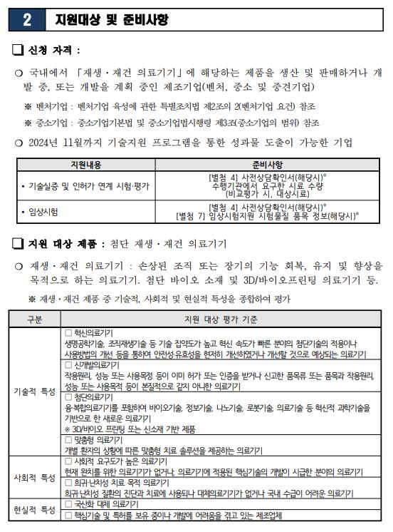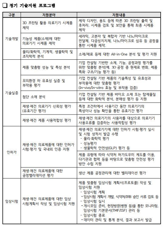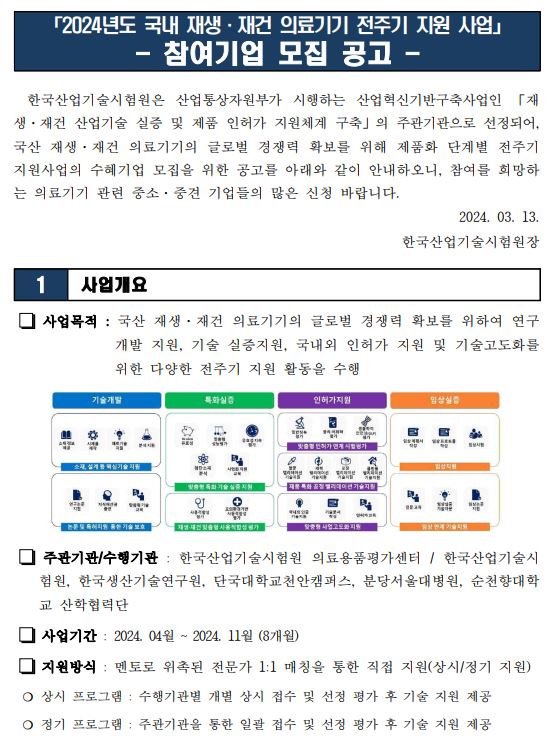 (정기)2024년도 국내 재생·재건 의료기기 전주기 지원 사업